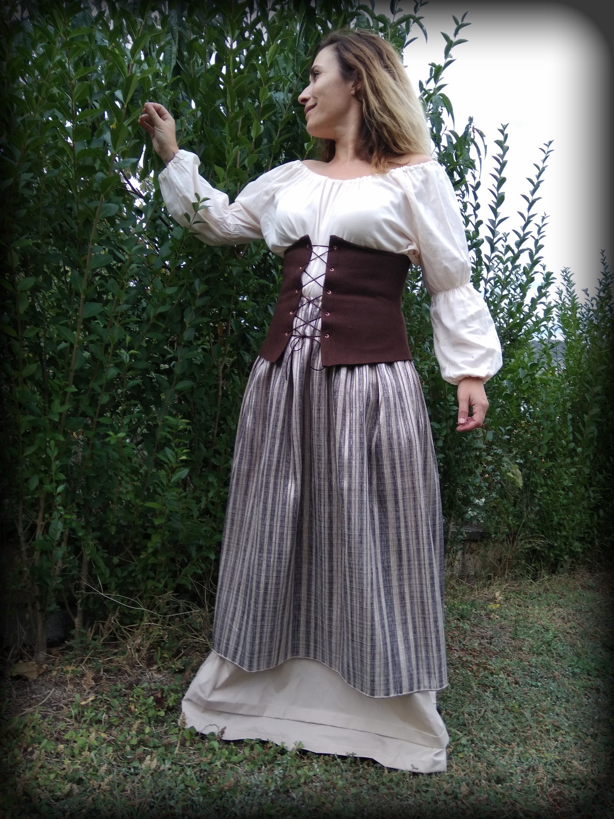 Pd: El Renacimiento fue bueno para el resurgir de muchas cosas, el arte, la ciencia, el humanismo….Pero para la mujer fue el declive, poco a poco se la fue arrinconado al hogar, los hijos…al gineceo de los antiguos griegos en que la mujer era un ser inferior, o, a los tiempos de los Romanos en que la mujer está sujeta al hombre de por vida. Y está forma de ver a la mujer duró hasta finales del siglo XIX en que empezaron las primeras reivindicaciones y luchas por la igualdad. En la edad Moderna en la ropa femenina se empezó a utilizar los corsés, miriñaques y demás «alambres» . Para la mujer fue la «Edad del Encorsetamiento»